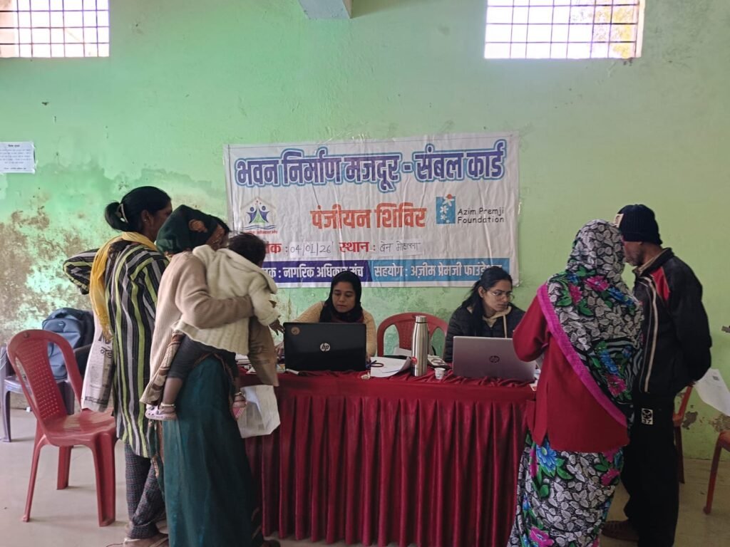 आज दिनांक 4 जनवरी 2026 को बेन मोहल्ला रामपुर में नागरिक अधिकार मंच के द्वारा  असंगठित क्ष्रेत्र के कामगारों की सामाजिक सुरक्षा योजनाओं की जानकारी, प्रपत्र सुधार एवं पंजीयन हेतु शिविर का आयोजन किया गया |